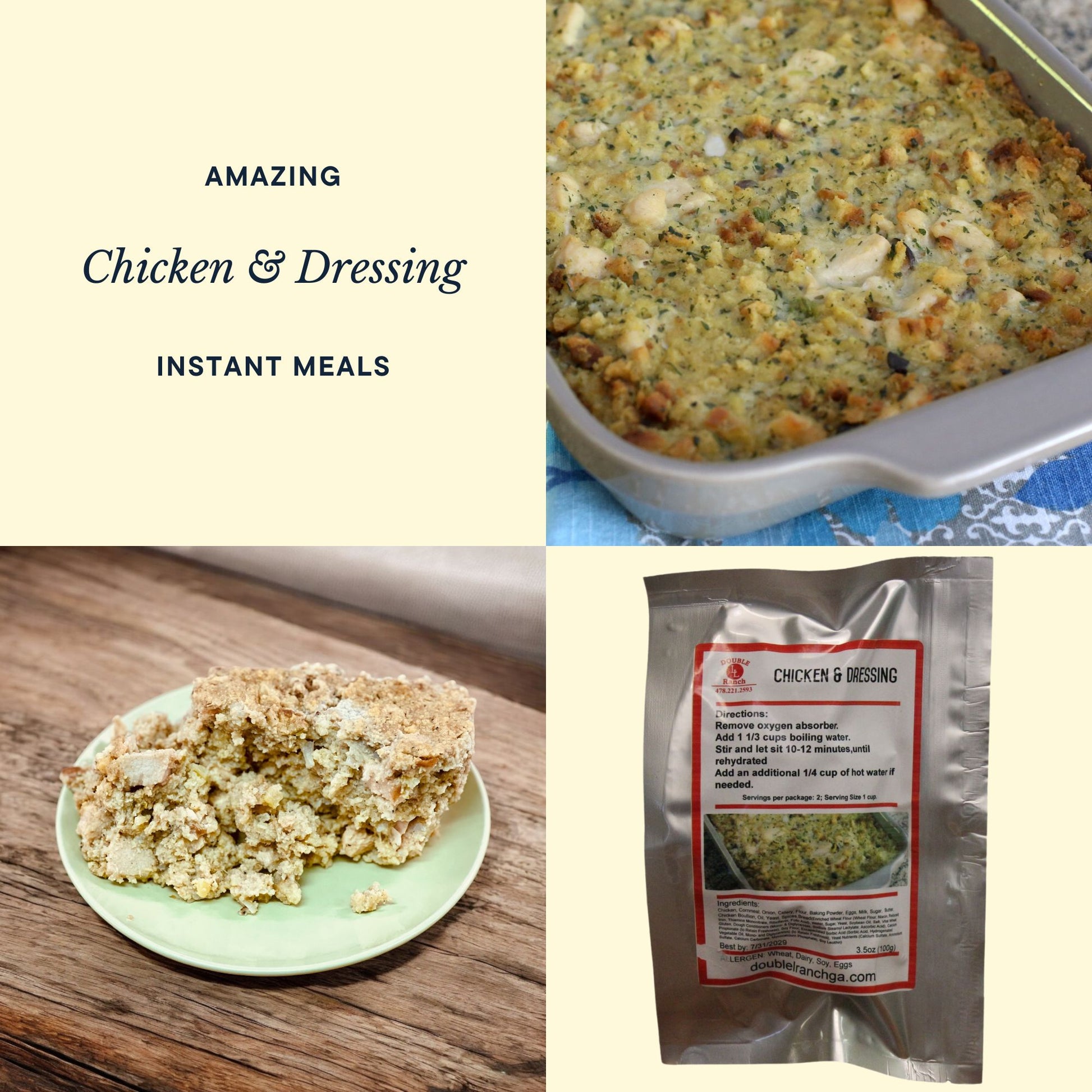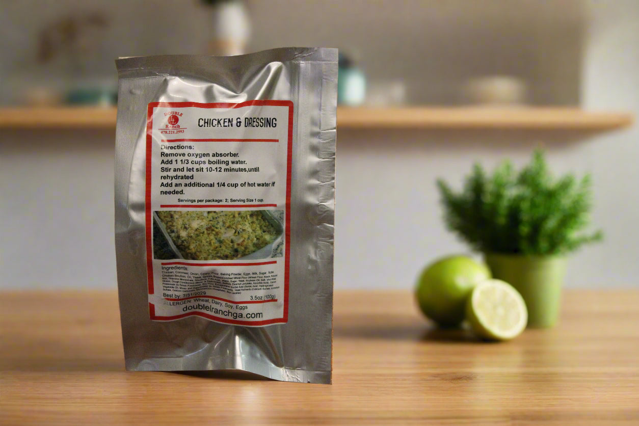 Experience the comforting taste of home with our Freeze-Dried Chicken and Dressing! This hearty dish features tender, seasoned chicken paired with delicious cornbread dressing, all expertly freeze-dried to retain its savory flavor and nutrients. Just add water, and in moments, you’ll have a warm, satisfying meal that brings the essence of a cozy family gathering right to your table. Perfect for camping, quick dinners, or emergency preparedness, this meal combines the deliciousness of traditional comfort food with the convenience of easy preparation. Enjoy a delightful blend of flavors and textures that will warm your heart and fill your belly.